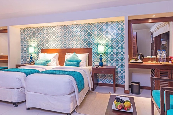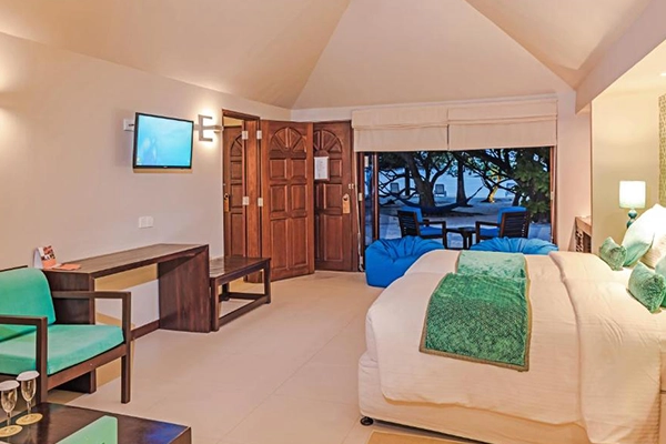 Enjoy the ultimate beachfront retreat with Deluxe Beach Villas, each offering privacy, direct beach access, and cozy bean bags. Daily snorkeling trips are complimentary. Book 5 nights for a free excursion or over 6 nights for two for a memorable Maldivian adventure.