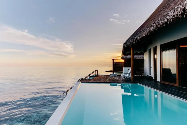 | 44 | Water Suite with Pool | Savor the splendor of pure happiness in this lavish overwater residence featuring roomy quarters and stunning vistas. The suites blue plunge pool is set ideally on the balcony, resembling a priceless pearl. Savor a private dining experience on your deck while taking in the view with room service. |